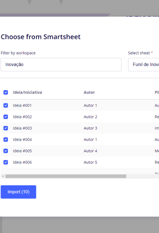 O Miro, como vimos, traz uma visualização bastante agradável do funil de inovação, além de também permitir uma gestão um pouco mais visual. Por ser um quadro livre e interativo, há inúmeras vantagens no seu uso. Porém, quando precisamos organizar as informações, as ideias, através de uma planilha, o Miro não é a ferramenta ideal. É possível utilizar o Excel ou Google Sheets para a gestão de todas as ideias. Uma alternativa com alguns recursos extras é o Smartsheet, software colaborativo para gestão de trabalho que integra planilhas, relatórios, dashboards, entre outras ferramentas.