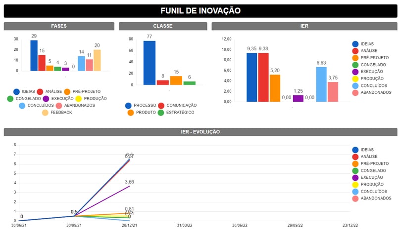 Os exemplos tratados foram apresentados com dados ilustrativos, mas toda metodologia acima foi desenvolvida e utilizada na prática, de forma real e com aprimoramento constante ao longo de vários meses. Em uma eventual parte II abordaremos um complemento ao funil, utilizando principalmente o Smartsheet para trazer mais informações e novos indicadores que auxiliem na gestão da inovação.